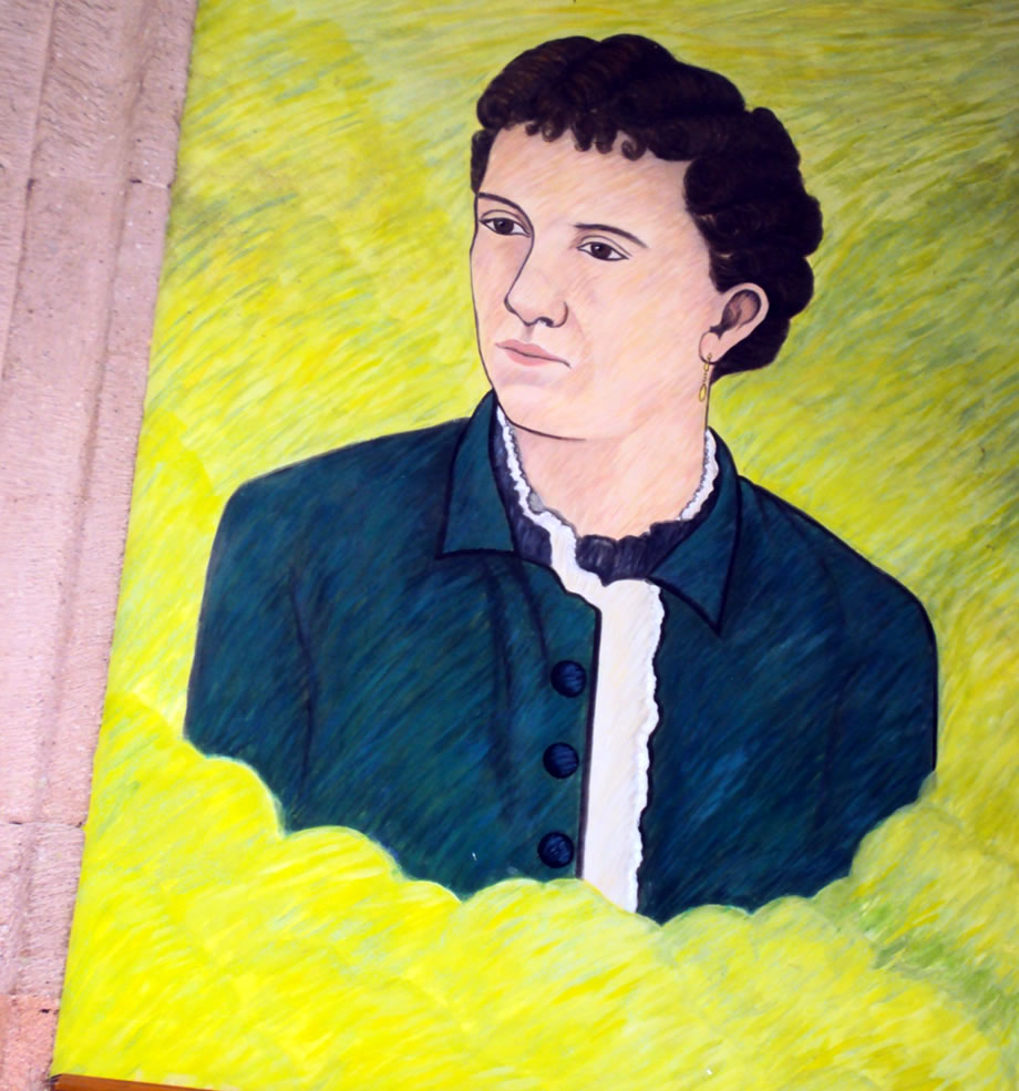 En la parte inferior aparece María de Jesús Rodríguez López mujer que se enfrentó a los soldados intervencionistas franceses y a los imperialistas mexicanos, cuando a petición de éstos les dio de beber agua, al serle regresados los trastos luego de saciar ellos su sed, los arrojó a sus pies diciendo: “Donde beben los franceses y los traidores, los hijos de Zitácuaro, jamás vuelven a beber”.