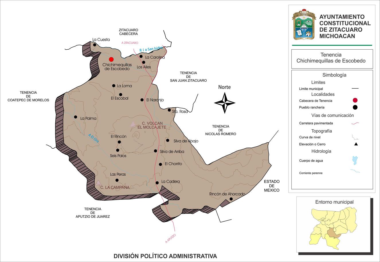 El territorio de esta tenencia se compone por ocho manzanas: primera, Pueblo de Chichimequillas y la Cuesta; segunda, El Llano; tercera, La Loma; cuarta, El Naranjo, Los Ailes y Rosa Santa; quinta; Las Peras, Silva de Abajo, Silva de Arriba y Seis Palos; sexta, Kilómetro11; séptima, La palma; octava, Rincón de Ahorcados.