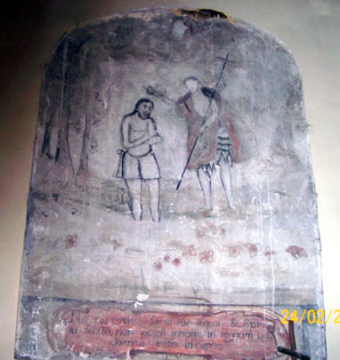 1.- Vestigios de pintura mural en las paredes del antiguo bautisterio, datada en la segunda mitad del siglo XVI, ya que la orden religiosa de los franciscanos, nunca más utilizó pintura mural después de esa época.