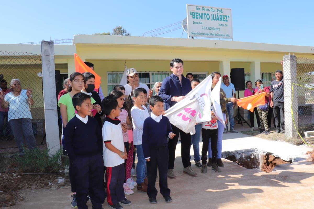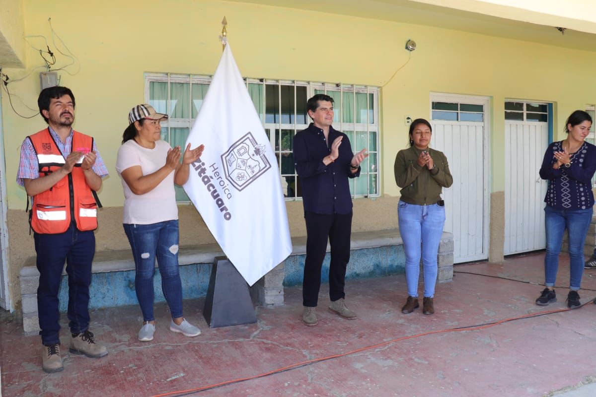 Zitácuaro, Mich., a 31 de enero del 2023.- La mañana de este martes, el alcalde Toño Ixtláhuac dio el banderazo de arranque a la construcción de un domo de 15 x 30 metros en beneficio de alumnas y alumnos de la primaria Benito Juárez de la comunidad de Loma Larga, perteneciente a la tenencia de Curungueo.